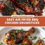 Delicious and juicy chicken drumsticks cooked to perfection in the air fryer with a smoky, flavorful marinade and coated in tangy BBQ sauce. This easy recipe delivers crispy skin and tender meat in less than 40 minutes, perfect for a quick and satisfying meal.