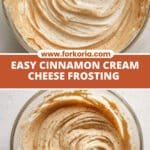 This Cinnamon Cream Cheese Frosting is a smooth, rich, and creamy topping perfect for cakes, cupcakes, and cinnamon rolls. Combining the tanginess of cream cheese with the warmth of cinnamon and sweetness of powdered sugar, it adds a delightful flavor and velvety texture to your baked treats.