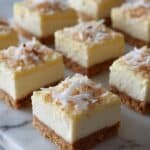 - Garnish and Slice: Just before serving, sprinkle the lightly toasted or fresh coconut flakes evenly over the top. Use a sharp knife to cut the dessert into 16 neat squares, wiping the blade clean between each cut for the best presentation.