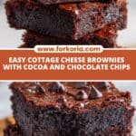 • Can I use regular cream cheese instead of cottage cheese? You could, but cream cheese is denser and higher in fat — it’ll change the texture and flavor, making the brownies richer and less tender.
