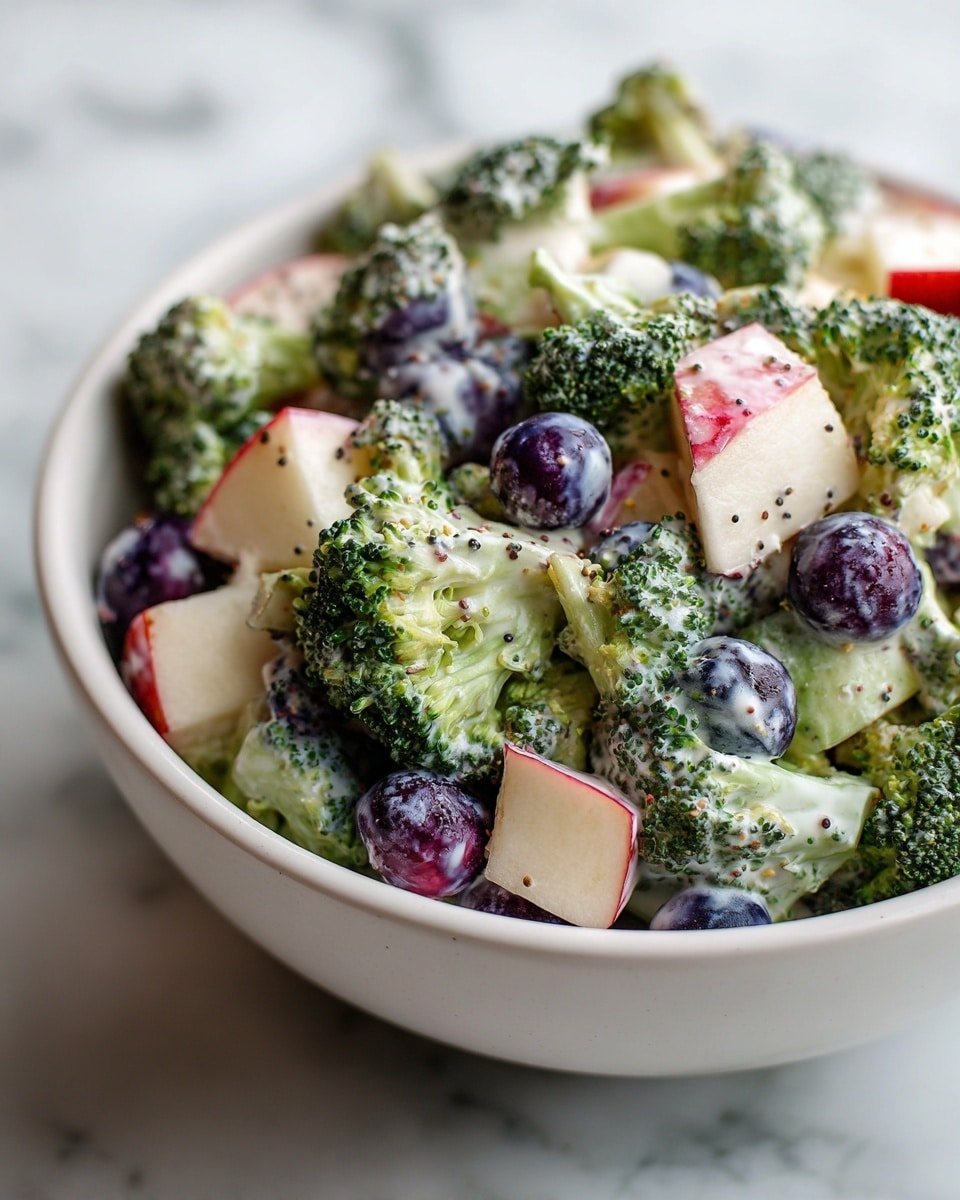 This Skinny Broccoli Salad with Poppy Seed Dressing is a fresh, vibrant, and healthy dish perfect for a light lunch or side. It combines crunchy broccoli florets with sweet blueberries and crisp apples, all coated in a tangy, creamy poppy seed dressing made from Greek yogurt, honey, lemon, and apple cider vinegar. This salad is easy to prepare, low in fat, and perfect for those seeking a nutritious and flavorful meal.