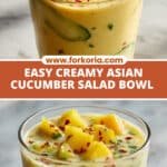 This Creamy Asian Cucumber Salad Bowl is a fresh, vibrant, and healthful dish featuring crisp cucumber, crunchy onions, baked tofu, edamame, and avocado, all layered to maintain texture and topped with a spicy, creamy dressing made with vegan cream cheese, mayo, and Sriracha. Perfect for make-ahead lunches or light dinners, it can be enjoyed straight from the jar or served over rice or noodles for a satisfying Asian-inspired meal.