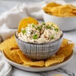 This creamy and flavorful Corn Dip combines sweet corn, crispy bacon, creamy mayonnaise and sour cream, and a hint of spice from jalapeño, making it a perfect party appetizer or snack to enjoy with tortilla chips.