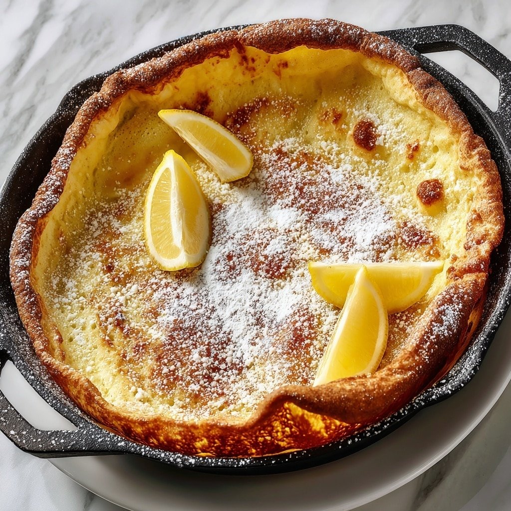 - Serve: Remove the Dutch Baby from the oven and serve immediately. Dust generously with powdered sugar and offer lemon wedges on the side to squeeze over for a fresh, citrusy contrast. Enjoy warm for the best texture and flavor.