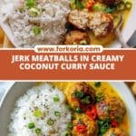 Jerk Pork Meatballs in Coconut Curry Sauce Recipe - Recipe Image — Jerk Pork Meatballs in Coconut Curry, Caribbean-inspired Meatballs with Coconut Curry, Spicy Jerk Pork Meatballs in Creamy Coconut Sauce, Tropical Jerk Pork Meatballs Recipe, Easy Caribbean Meatballs in Coconut Sauce