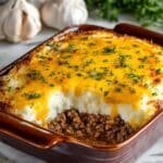 This Keto Beef and Cauliflower Casserole is a low-carb, comforting dish featuring seasoned ground beef layered with creamy cauliflower puree and topped with melted cheddar cheese. Perfect for a satisfying keto-friendly meal, it combines savory flavors with a smooth, cheesy texture.