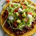 This Keto Beef Tostadas recipe offers a low-carb twist on the classic Mexican favorite by using crispy low-carb tortillas topped with seasoned ground beef, fresh lettuce, tomatoes, shredded cheese, and creamy avocado and sour cream. It’s a quick and flavorful dish perfect for a keto-friendly meal that doesn’t sacrifice any taste or texture.