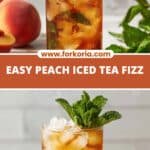 - Garnish and Serve: Garnish each glass with fresh peach slices and mint leaves to enhance aroma and visual appeal. Serve immediately and enjoy your refreshing Peach Iced Tea Fizz.