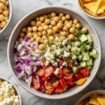 A fresh and vibrant Mediterranean Chickpea Salad packed with protein-rich chickpeas and colorful vegetables, tossed in a tangy olive oil and red wine vinegar dressing, perfect for a quick, healthy meal or side dish.
