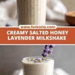 A delightful Salted Honey Lavender Milkshake combining creamy vanilla ice cream with floral lavender infusion, a touch of honey sweetness, and a subtle hint of sea salt for a refreshing and aromatic treat.