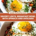 Savory Lentil Breakfast Bowl with Eggs, Spinach, and Avocado Recipe