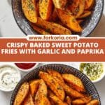 Crispy and flavorful Sweet Potato Fries baked to golden perfection, seasoned with paprika and garlic powder, perfect as a healthy snack or side dish served with your favorite dipping sauce.