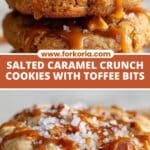 Deliciously rich Salted Caramel Crunch Cookies combine buttery dough with toffee and caramel bits, finished with a sprinkle of flaky sea salt for the perfect sweet and salty treat. These cookies are crisp on the edges with a chewy center, ideal for any dessert lover craving a special homemade cookie.