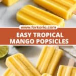 These Tropical Mango Popsicles offer a refreshing and healthy treat perfect for warm weather. Made with ripe mangoes, creamy coconut milk, a touch of honey or agave syrup, and a splash of lime juice, these naturally sweet and creamy popsicles are easy to prepare and perfect for cooling down any time of day.