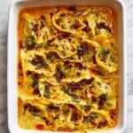 Once out of the oven, sprinkle the bake generously with chopped fresh cilantro, thinly sliced green onions, and a spoonful of Crunchy Chili Onion or your favorite chili crisp for that final burst of texture and fire. It’s the perfect finishing touch that awakens the dish.